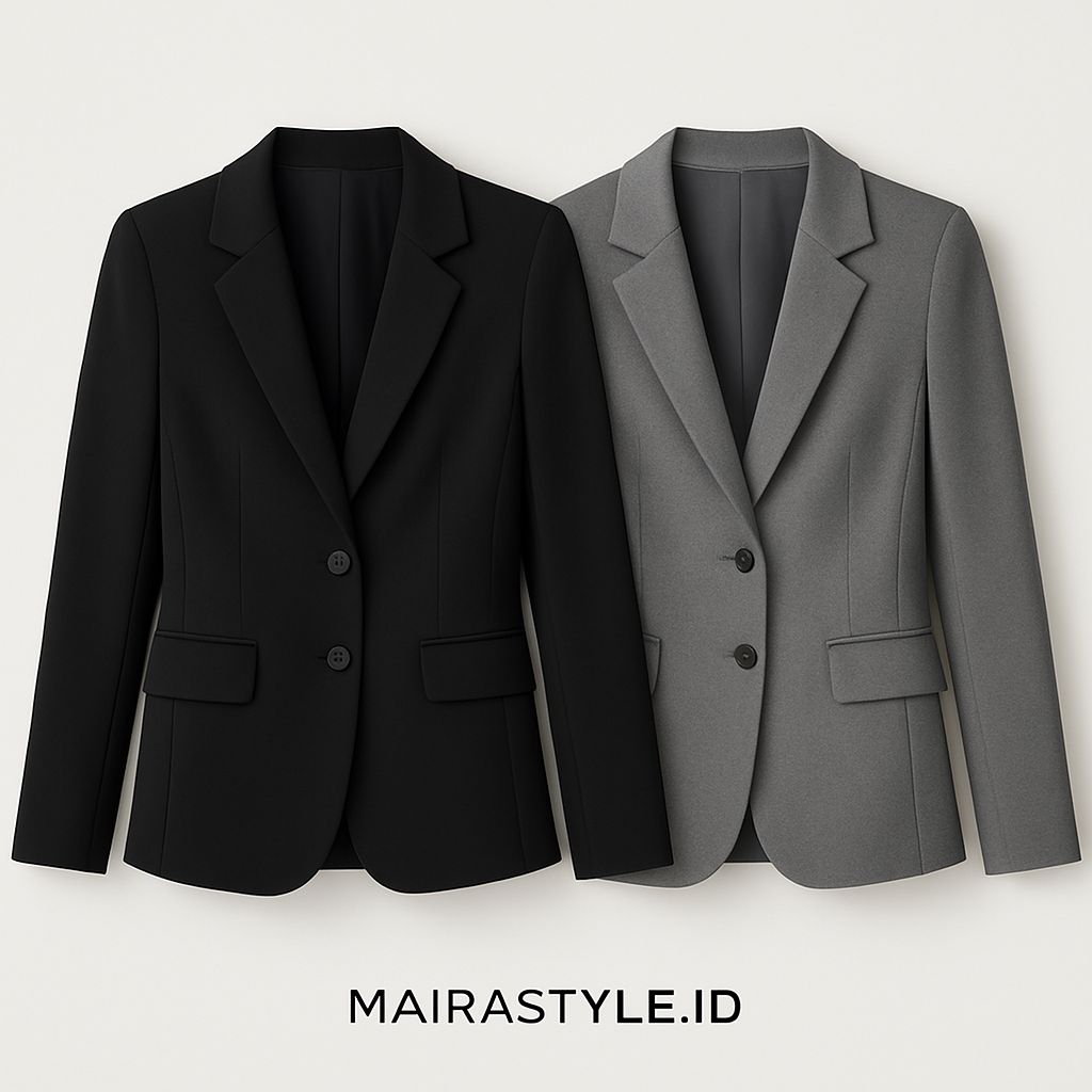 Blazer Kerja Wanita Slim Fit Hitam Abu – Ukuran S–5L | Jas Formal Elegan Mairastyle