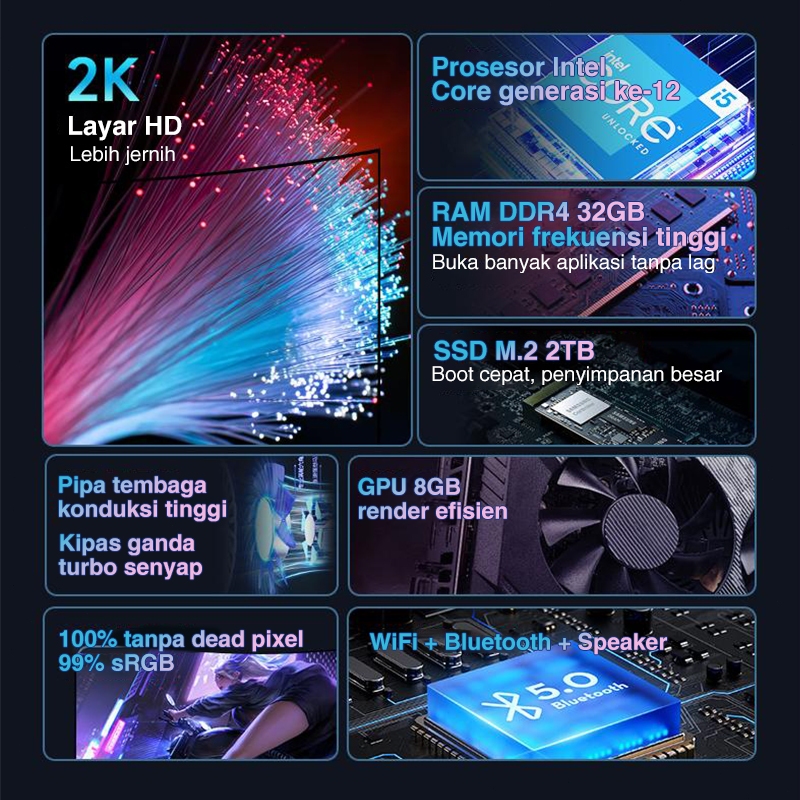 Lenovo Komputer PC All in One Curved 24/27/32inch Monitor Baru 2026TerBaru PC Gaming CPU Intel Core i5i7/RAM 8G16G/SSD 256G512G