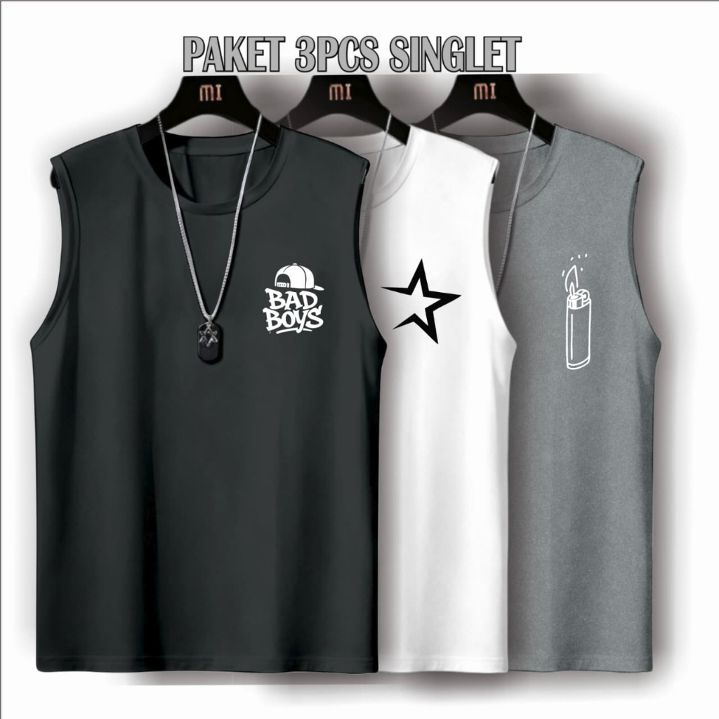 Singlet Lekbong Unisex Paketan 3 pcs CUMA 50ribu Singlet Santai Gym / Paketan Singlet Simple