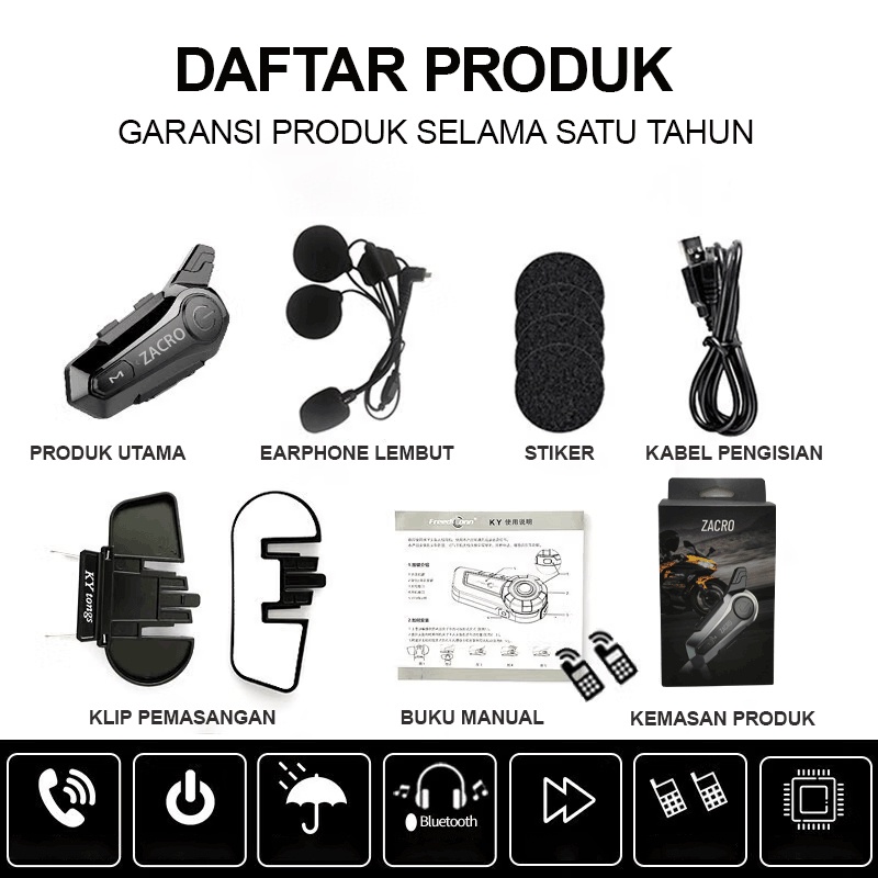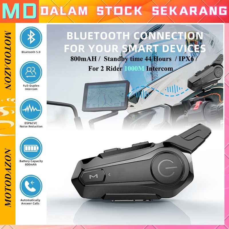【Stok Tersedia】E1 Intercom helm Bluetooth 5.0 FM Radio intercom dua arah dan Peringkat tahan air IPX6