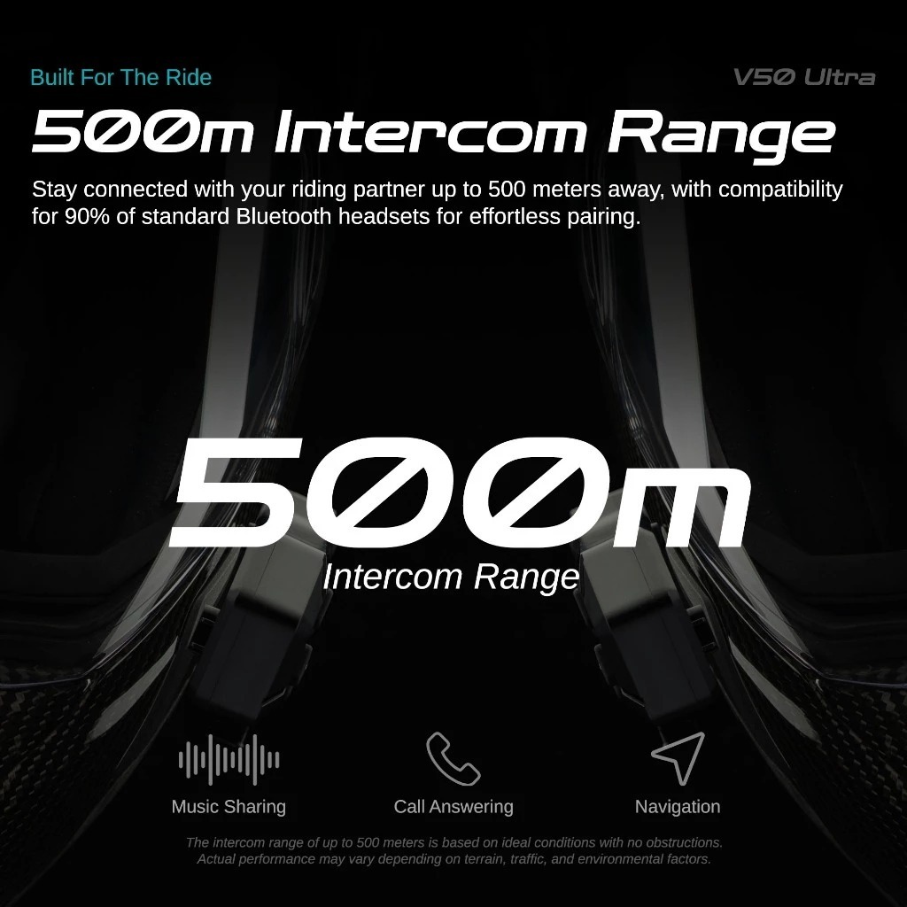 BLAISE V50 ULTRA Motorcycle Helmet Mesh Intercom Headset 2-50 people group intercom One-click Connection IP67 waterproof