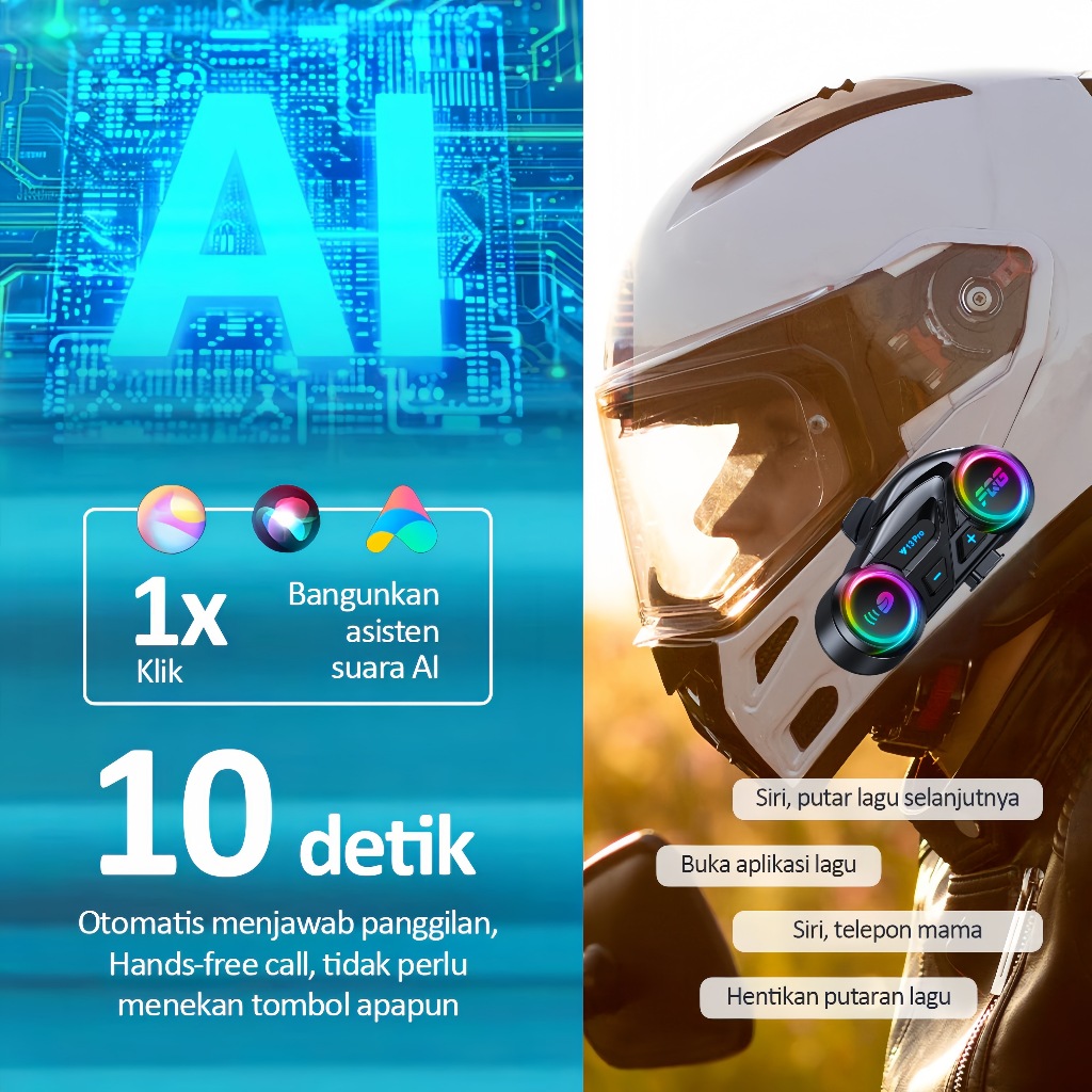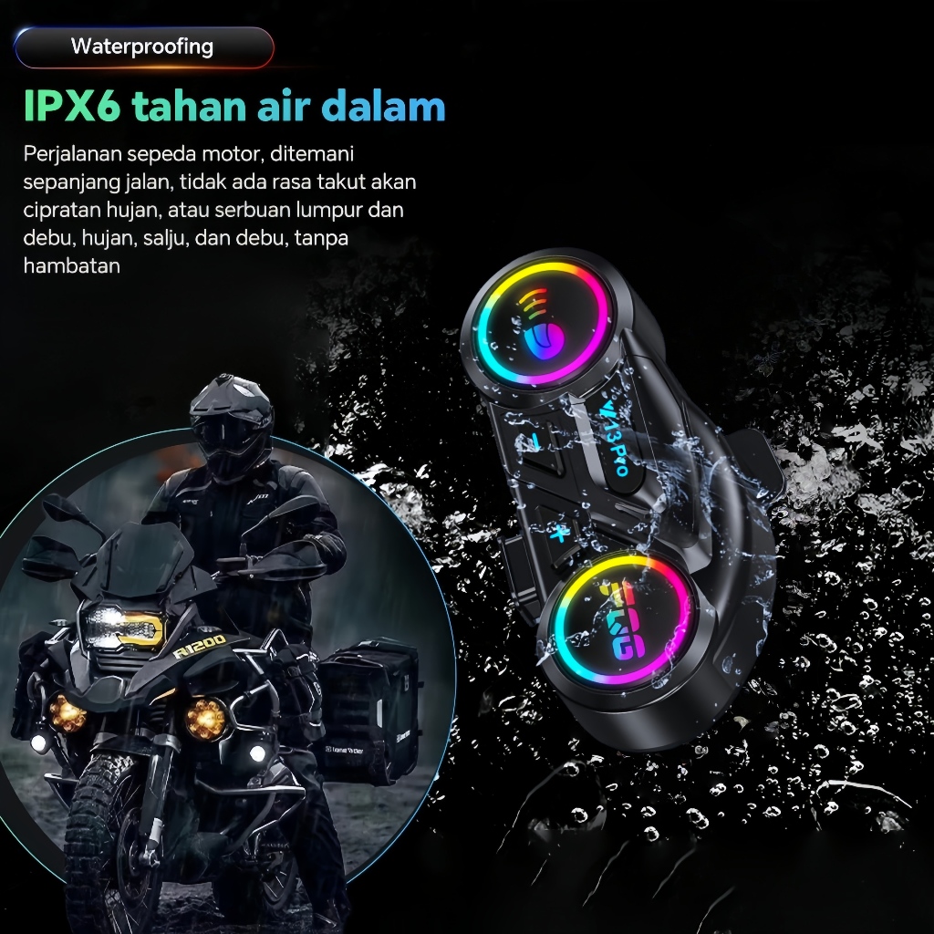 Intercom helm waterproof motor headset helm bluetooth IP56 TahanAir music sharing