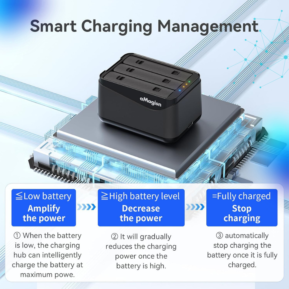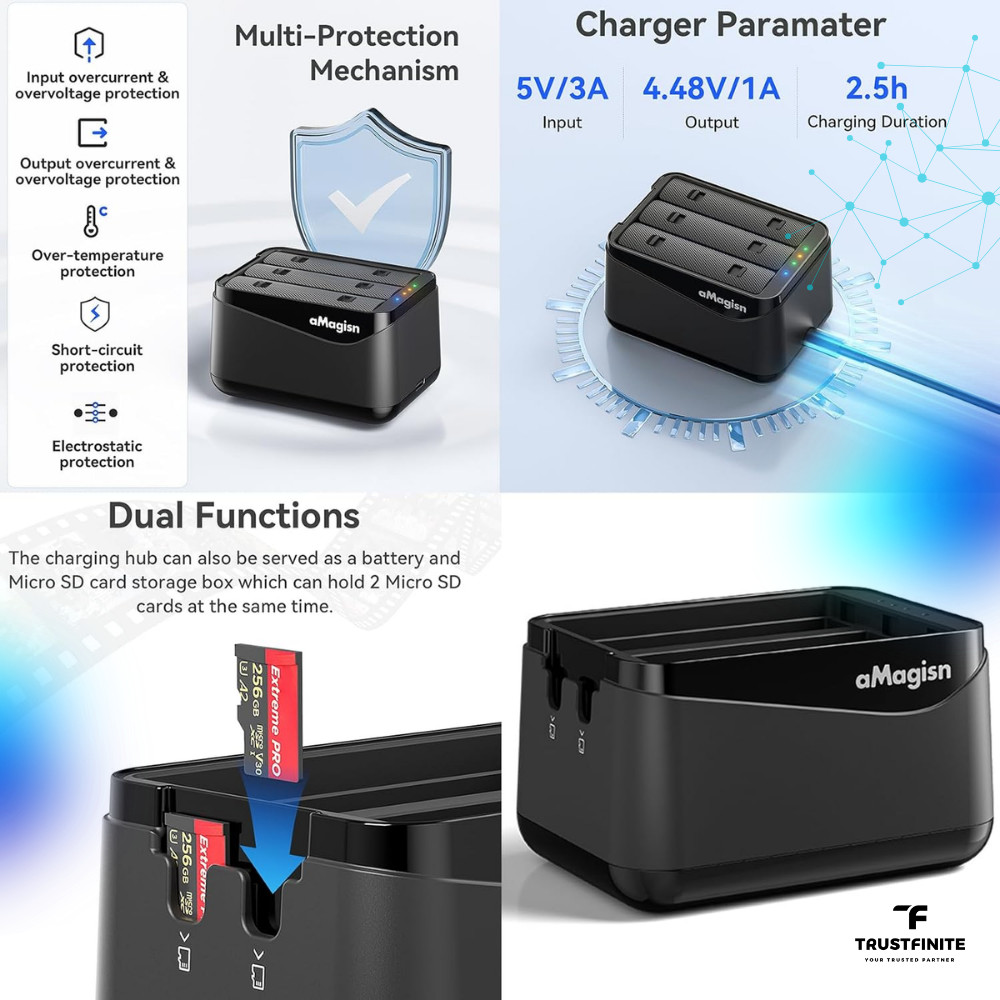 aMagisn 3 Slot Charger Hub with SD Card Storage Insta360 X5 / Charger Baterai Insta360 X5