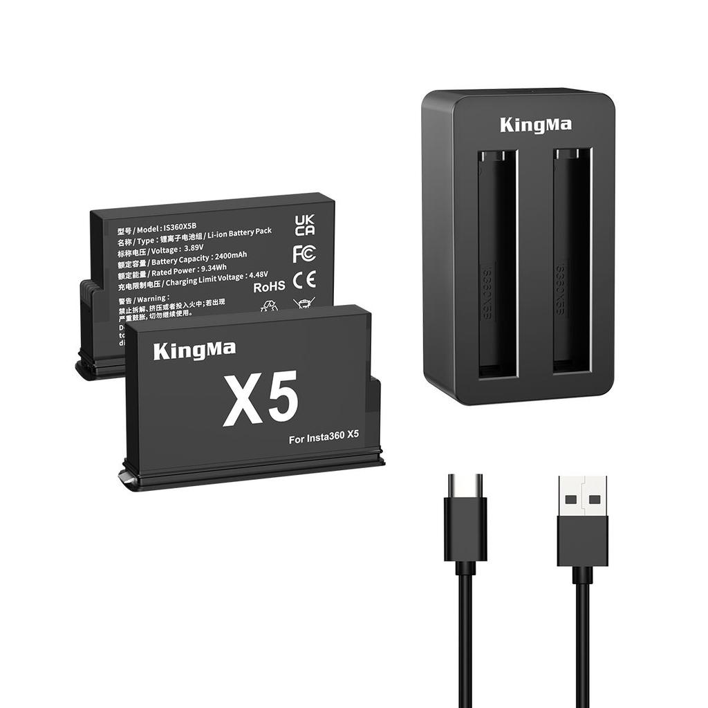 Kingma 2 Battery + Charger For Insta360 X5 Fast Charging - Baterai Insta360 X5
