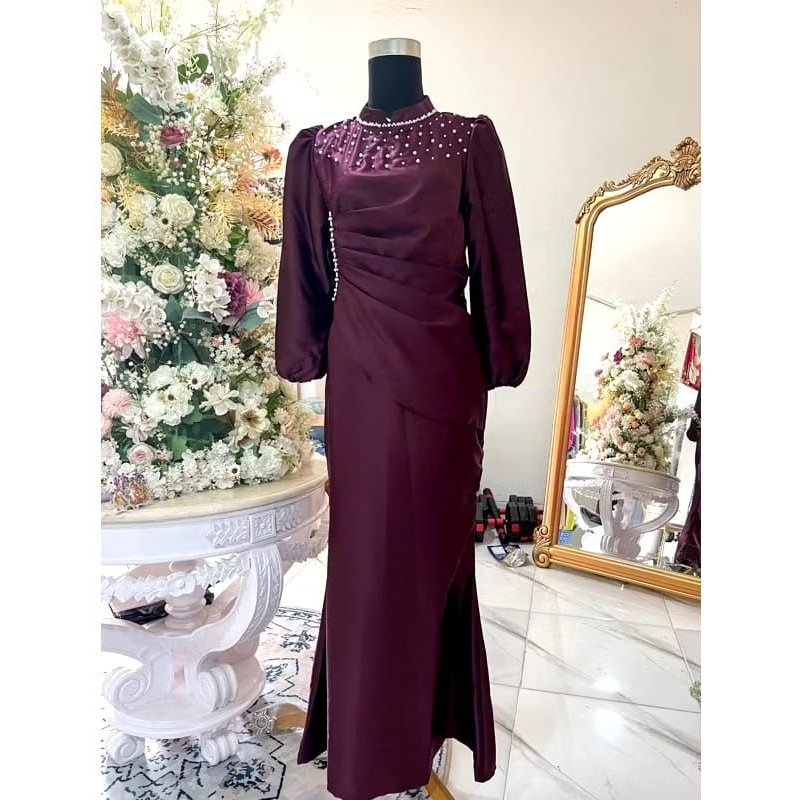 [ Vina Dress Spesial Burgundy ] Dress Kondangan Viral Termurah | Gaun Kondangan Rok Duyung | Baju Wanita Kekinian | Gaun Pesta Terlaris