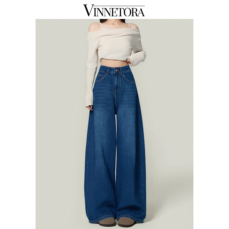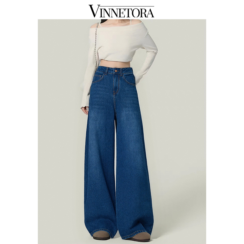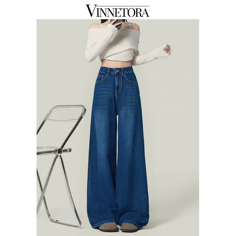 VINNETORA Straight Jeans Highwaist Kulot Loose Celana Wide Leg Jeans Wanita 8817