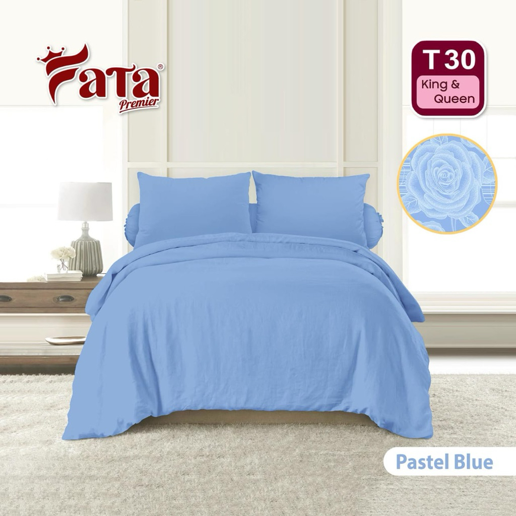 FATA - Bed Cover Set Sprei Tinggi 30 Warna Pastel Blue Ukuran King 180x200 / Queen 160x200