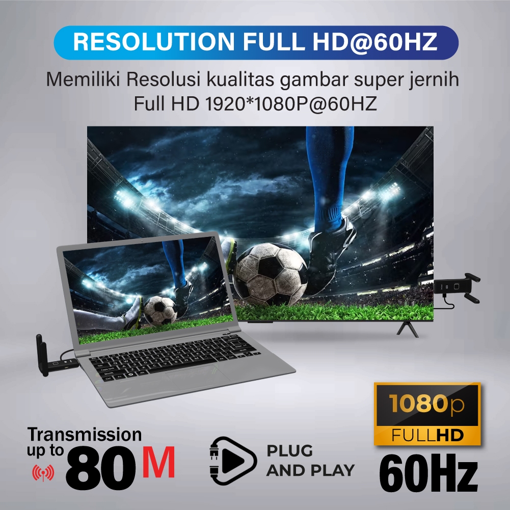 Wireless HDMI Transmitter Receiver Audio Video Display Stick Laptop Smartphone 80 meter PX WTR-300A