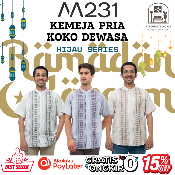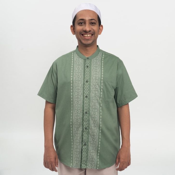 Baju Koko Pria Dewasa Original M231 Kemeja Pria Koko Lengan Pendek Premium Viscose Twill Hijau Series Size S - XXL