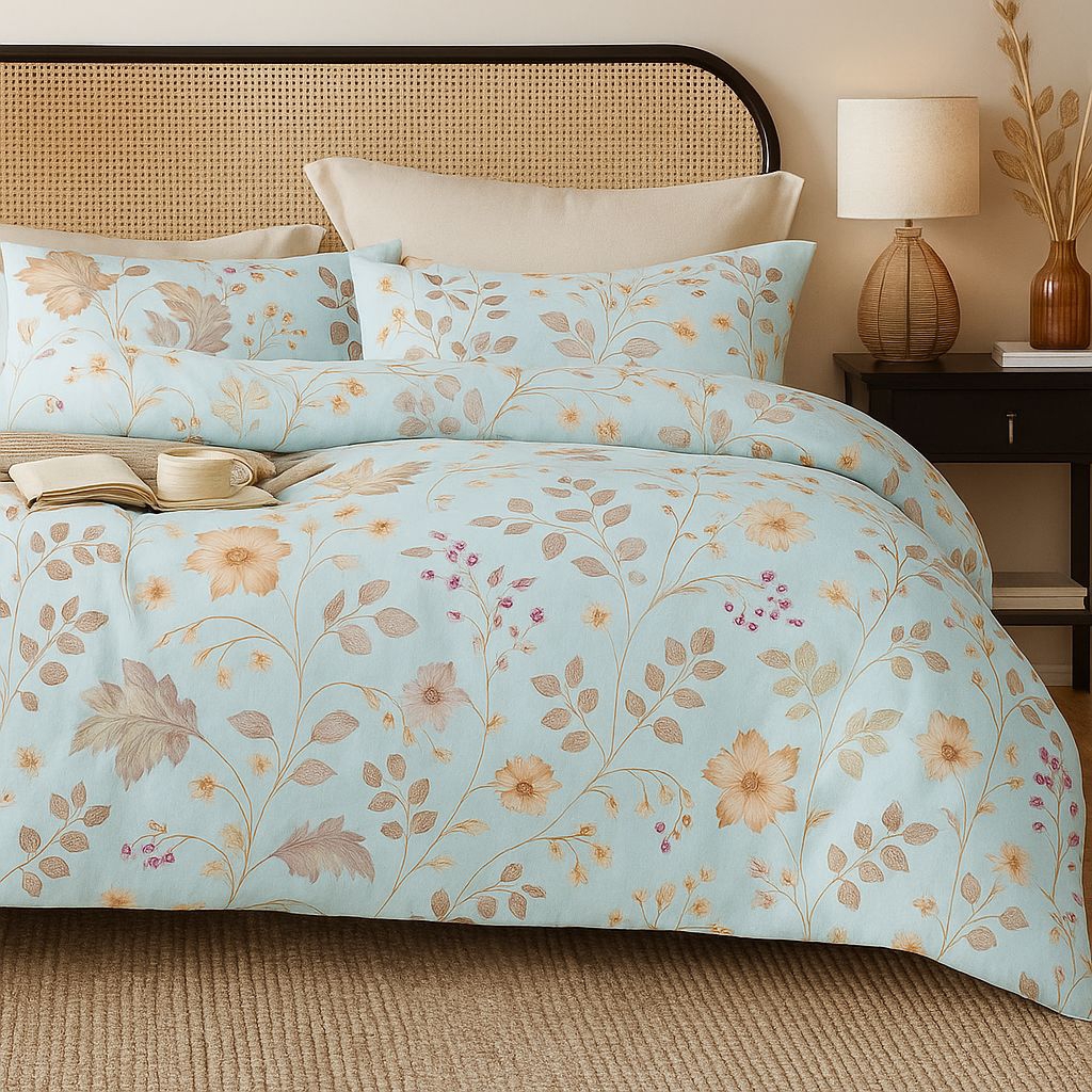 Bed Cover Set Sprei Motif Nadia Biru Muda Pastel Bunga - Ukuran 160x200 - 180x200 - 200x200 profesional