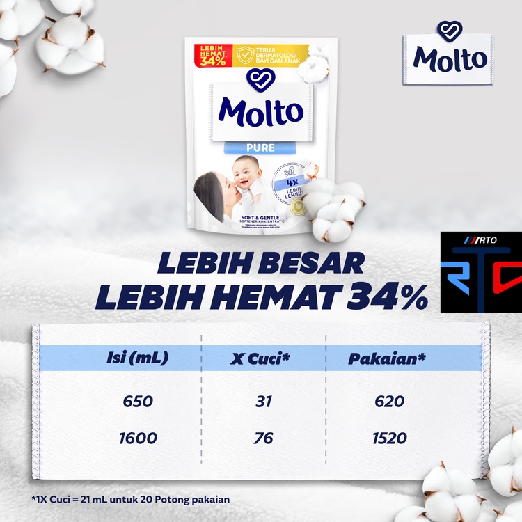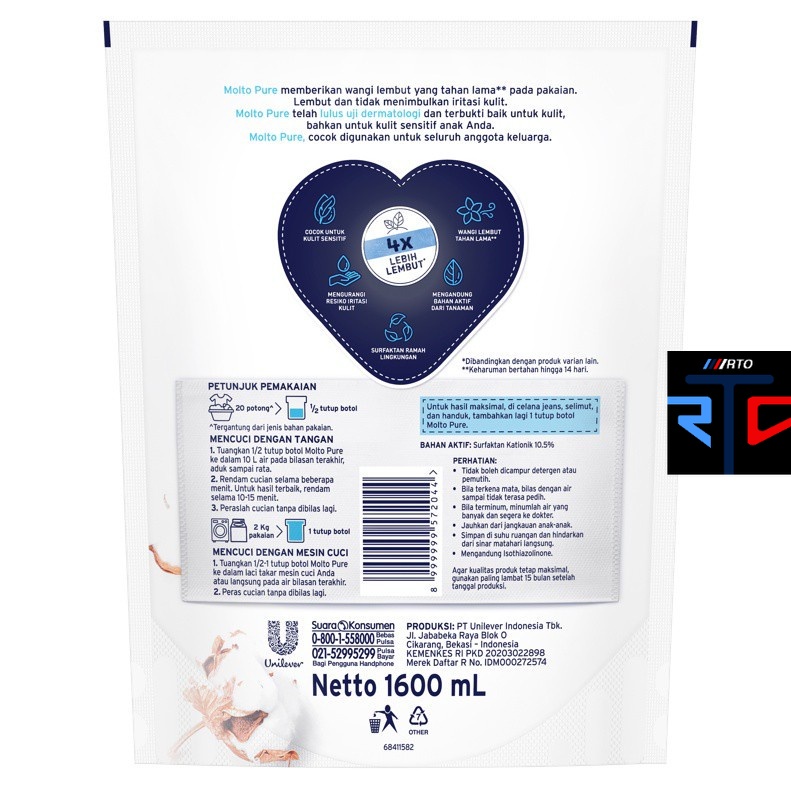 MOLTO SOFTENER KONSENTRAT PEWANGI PAKAIAN BAYI PURE DERMATOLOGICALLY TESTED 1.6L
