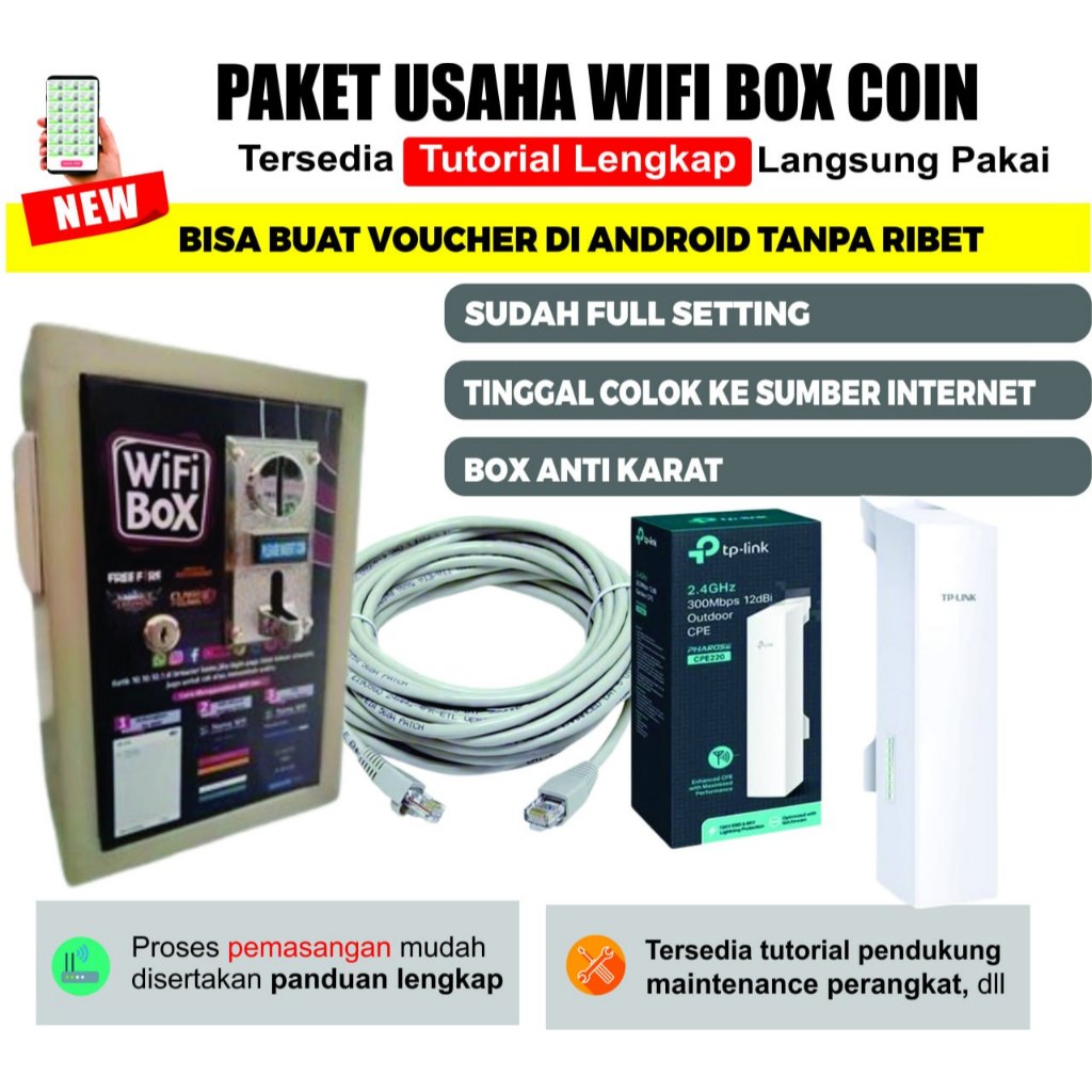 Paket Usaha Wifi Box Koin Full setting siap pakai + Akses Point Outdoor