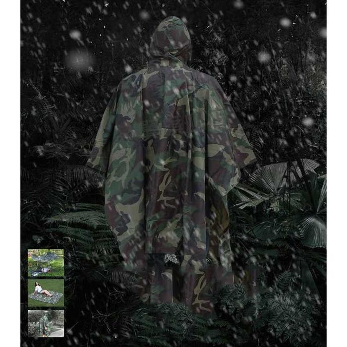 Jas Hujan Ponco Motif Loreng Tentara PVC Raincoat Anti Basah Untuk Motor dan Camping