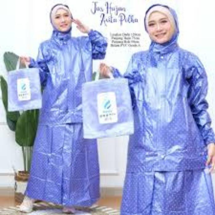 Mantel Mantol Jas Hujan Baju Rok Wanita Gamis Cewek Dewasa Polkadot Plevia POP 870 PVC Anti Rembes