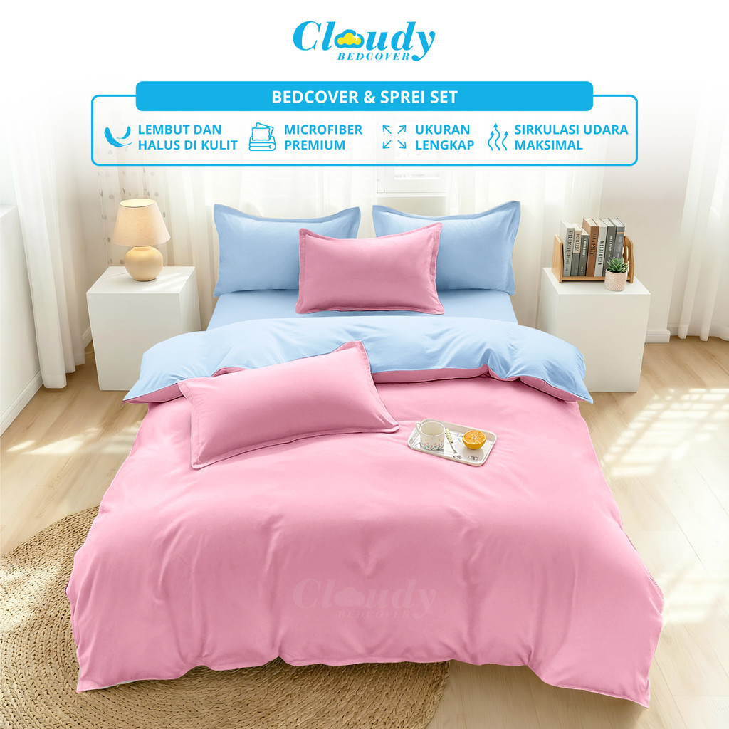 Bedcover Set Sprei Baby Pink Mix Pastel Blue - Ukuran Lengkap 90x200 - 200x200 - Cloudy Bedcover