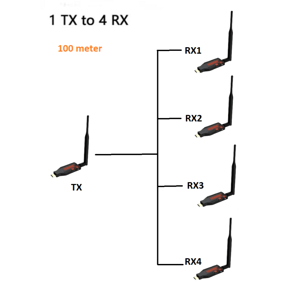 HDMI Wireless Extender Video Display 100m Up to 4 Receiver Full HD