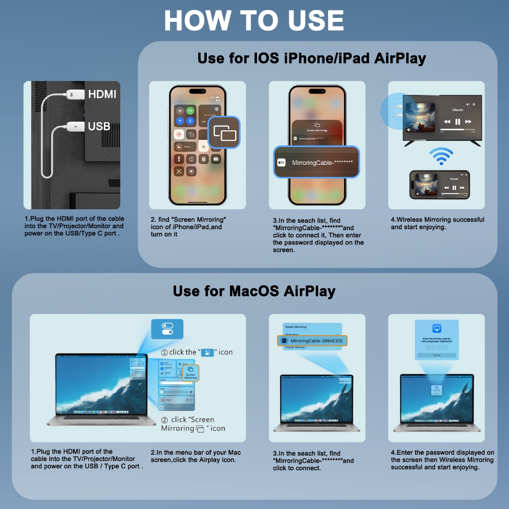 ANYTROX Wireless HDMI Transmitter & Receiver 50m 1080p Same screen mirroring for phone/Laptop/TV/Projector