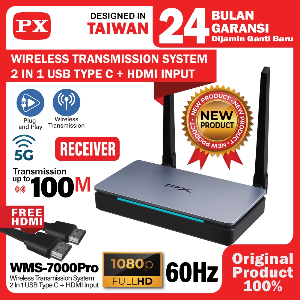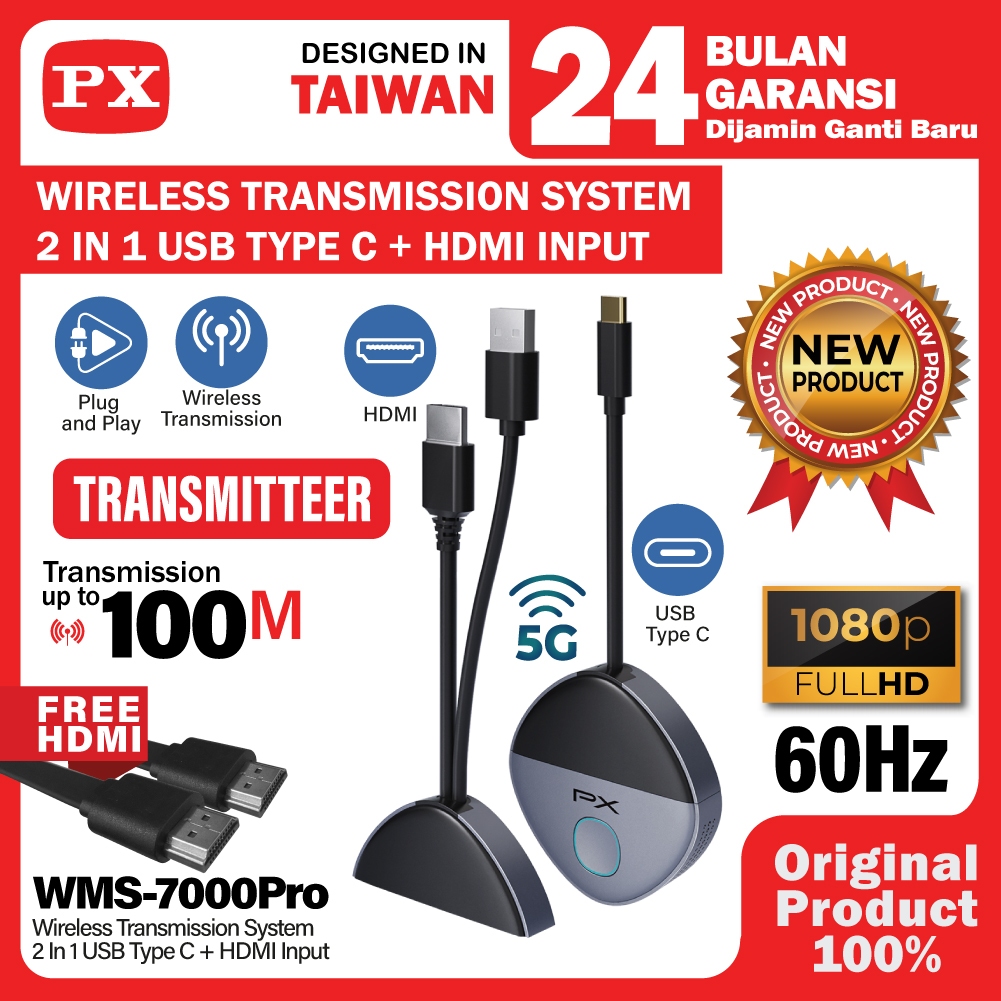 Wireless HDMI Transmitter Receiver 2 in 1 HDMI USB Type C Laptop Smartphone Tablet 100 meter PX WMS-7000PRO RS-TX