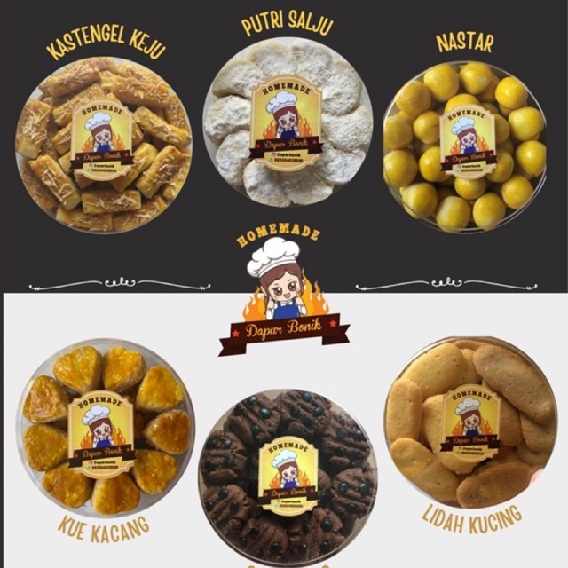 Nastar, Kastengel Keju, Putri Salju, Chocochips, Kue Kacang