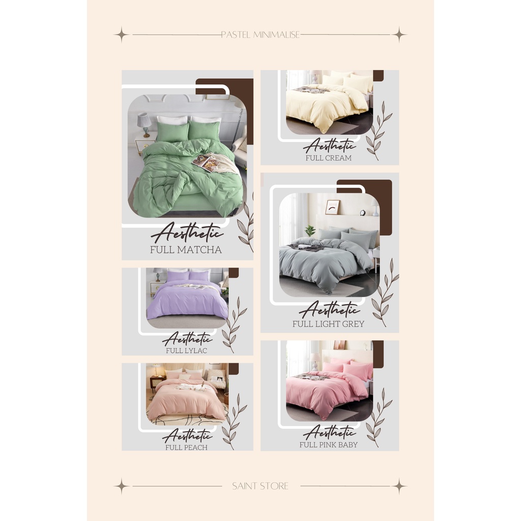 BEDCOVER SET | Bedcover Set Minimalise Motif Polos Pastel Satu Warna Bed Cover Sprei Set Size Single Queen King Size 120x200x20 160x200x20 180x200x20