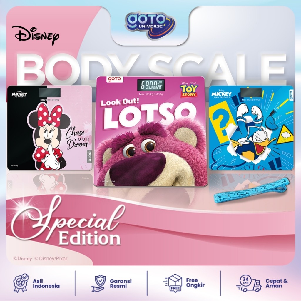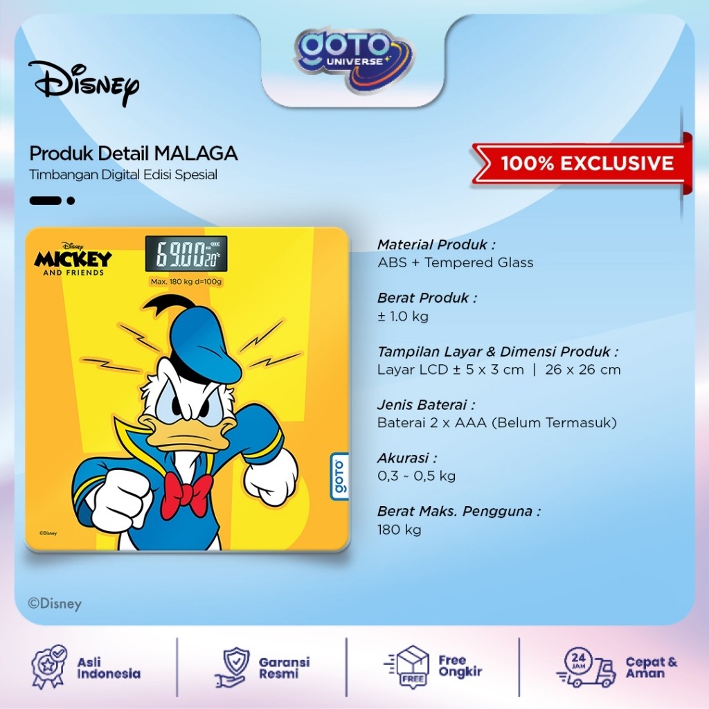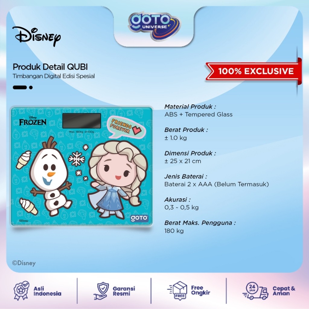 Goto Malaga Qubi X Disney Timbangan Berat Badan Digital Baterai Kaca