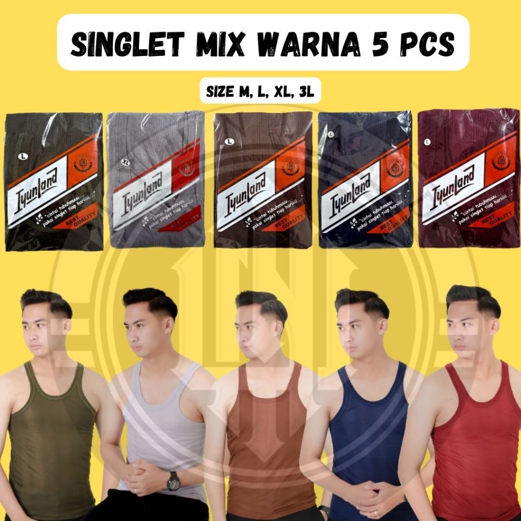 IYUNLAND Paket isi 5 Kaos Singlet Tanktop Pria Dewasa Murah Kaos Dalam Pria Warna Warni Singlet Pria Warna