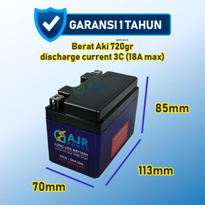 AKI ACCU LITHIUM LIFE4 SEPEDA MOTOR 12V 6AH DENGAN BMS STARTER