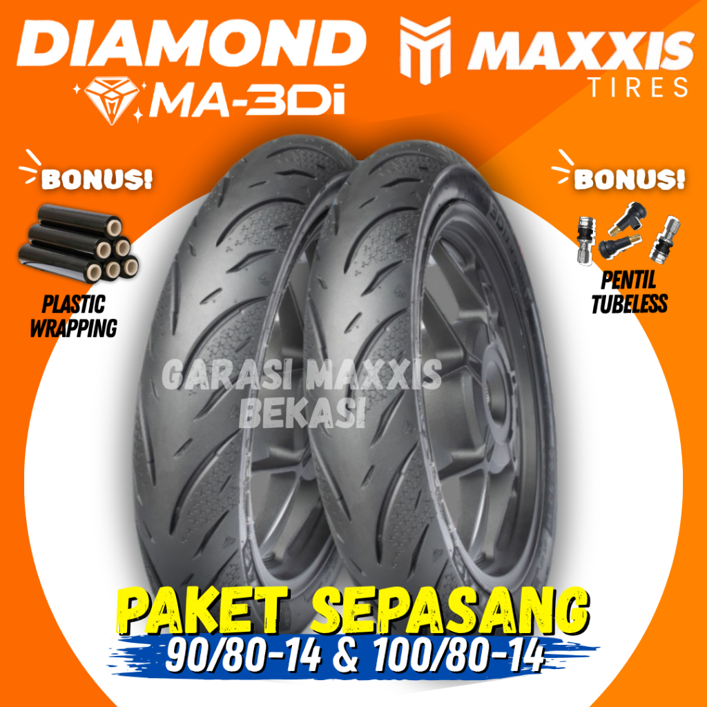 PAKET SEPASANG BAN MAXXIS DIAM0ND MA-3DI TUBELESS 90/80-14 & 100/80-14 BAN MOTOR DEPAM BELAKANG MOTOR MATIC / 3Di MAXXIS RING 14 / BAN MOTOR MIO M3 J SCOOPY BEAT VARIO NEX FINO ASLI