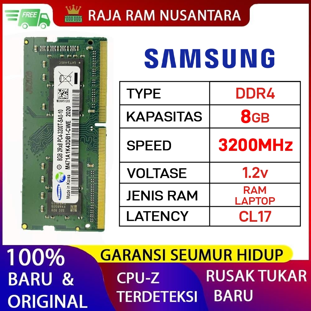 RAM LAPTOP SAMSUNG DDR4 8GB 3200MHz PC 25600 1.2v ORI GAMING RAM SODIMM DDR4 8GB