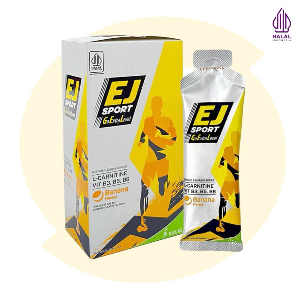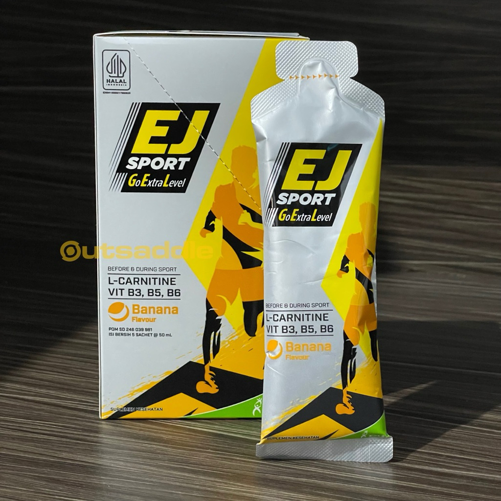 EJ SPORT Energy Gel 50ml Banana 1 Box Isi 5 Gel Karbohidrat Dan L‑Carnitine Cepat Serap untuk Olahraga Lari Sepeda Fitness Rasa Pisang