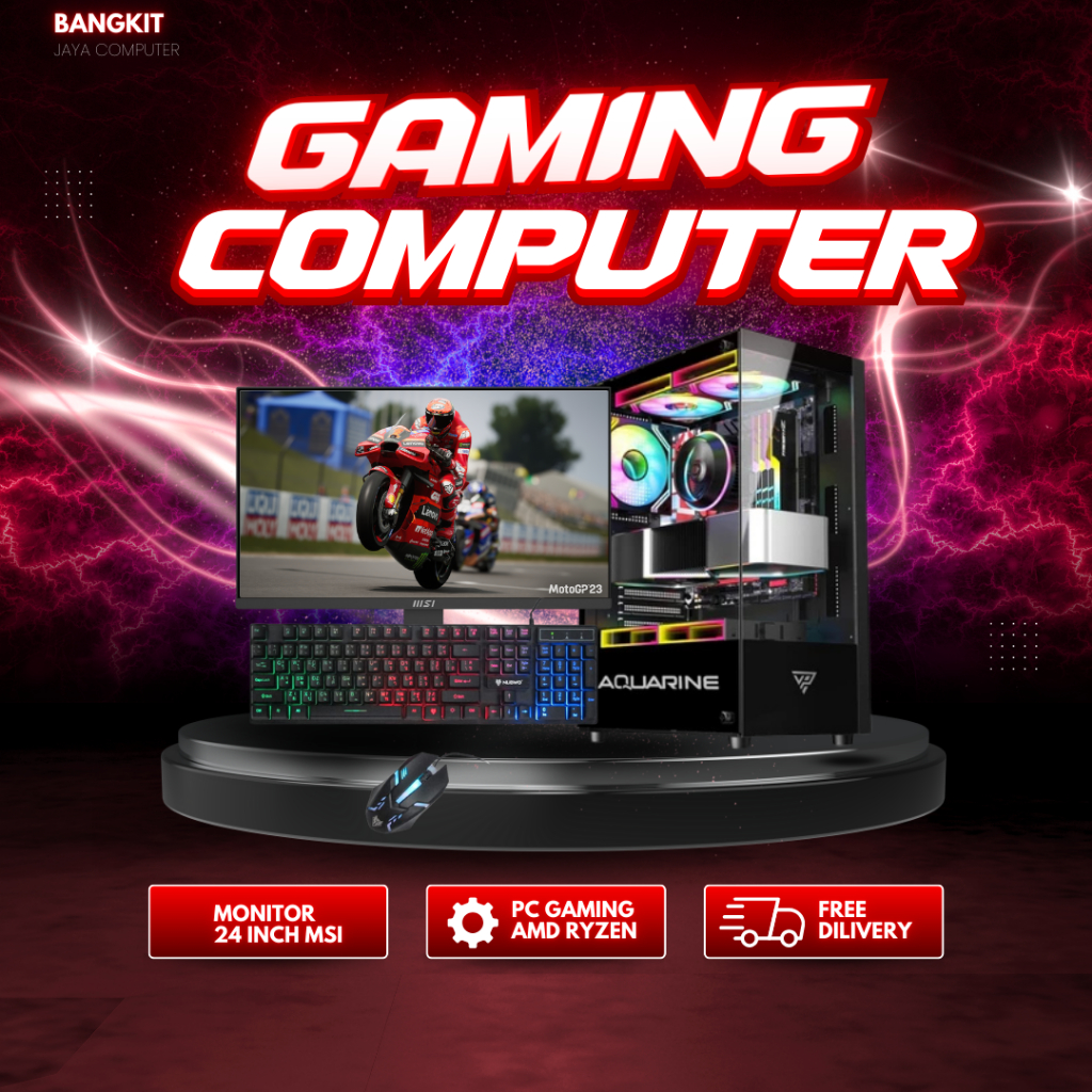 PC Gaming FullSet AMD Ryzen 5 5600GT Ram 32 GB Ssd 240 Gb Lengkap LED 24 Inch Keyboard Mouse Gaming
