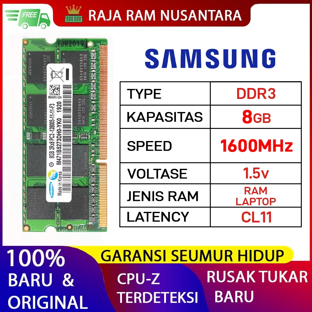 RAM LAPTOP SAMSUNG DDR3 8GB 1600MHz PC 12800 1.5v ORIGINAL RAM SODIMM DDR3 8GB