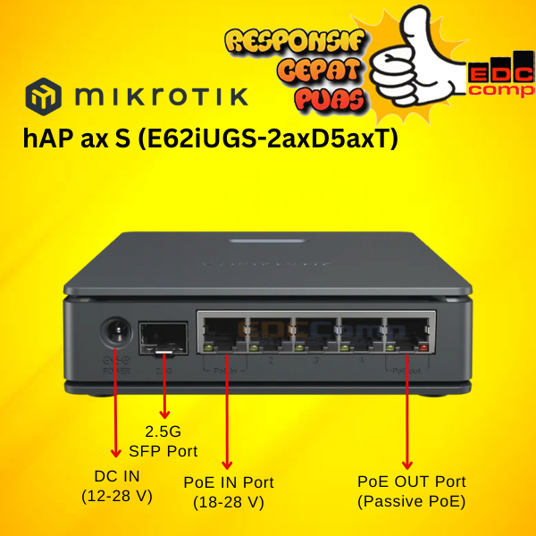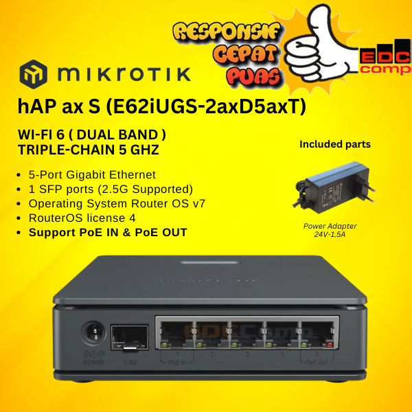 Mikrotik E62iUGS-2axD5axT | hAP ax S dual-band Wi-Fi 6, 5x Gigabit Ethernet ports, 2.5G SFP
