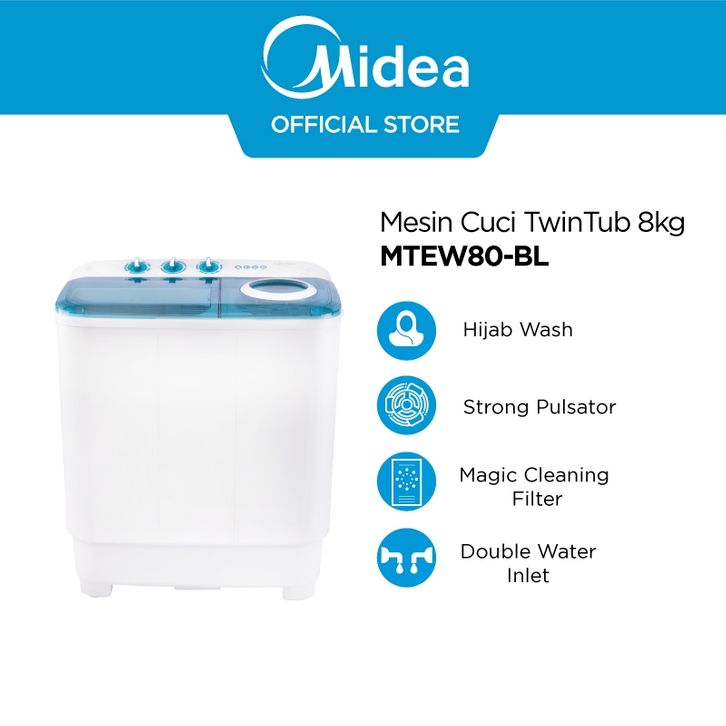 Mesin Cuci 2 Tabung/Twin Tub Kapasitas 8 Kg - Model MT100W80/MTEW80-BL/MTEW80-RD Hijab Series