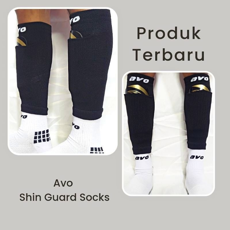 Paket lengkap kaos kaki olahraga dan sarung deker pelindung tulang kering sepak bola futsal premium original avo