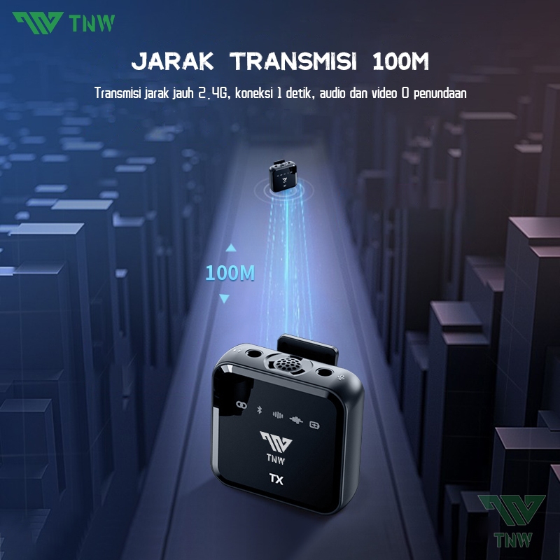 TNW-N9/N8 Wireless Microphone Professional Wireless 2 Mikrofon untuk HP DSLR Zoom Vlog Lavalier Mic clip on