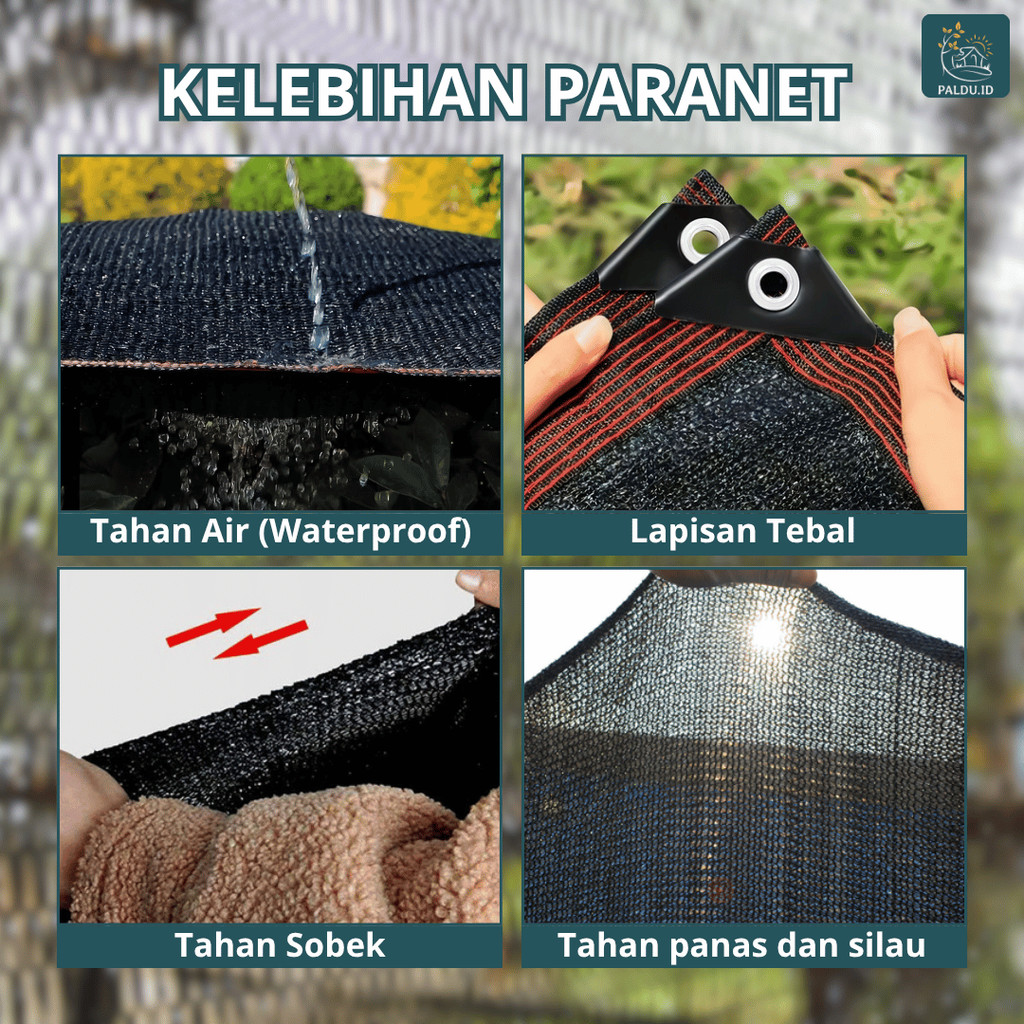 Paranet 95 Persen Ukuran 6 Meter S/D 12 Meter High Quality Anti-Uv Jaring Waring Paranet Enkripsi 6-Pin