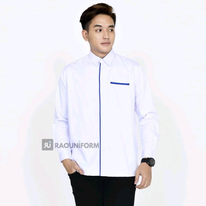 Raouniform Kemeja Putih List Pria Wanita Seragam Kantor Lengan Panjang Seragam Dinas Putih