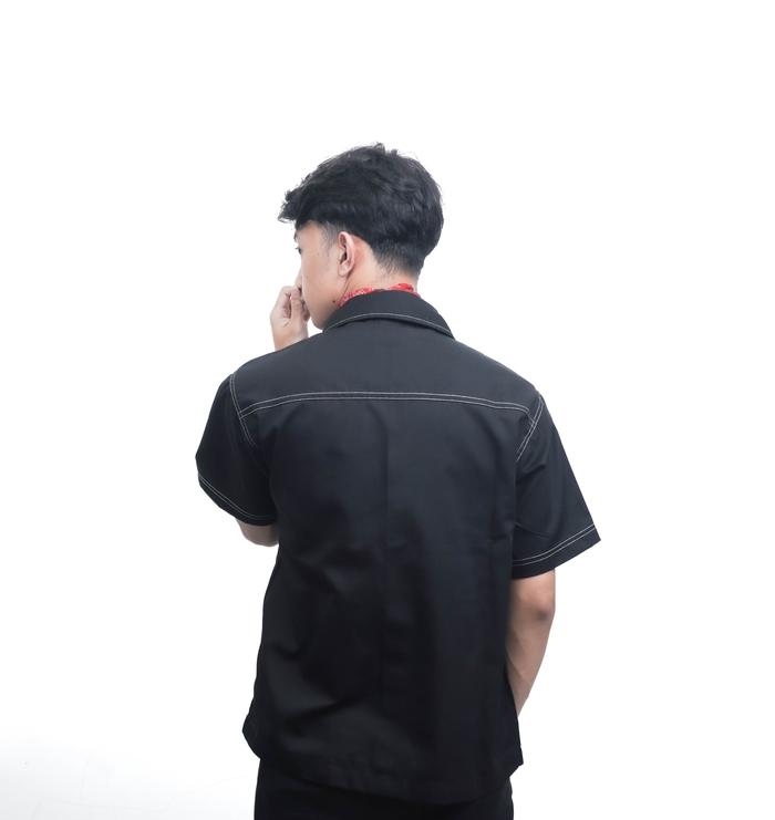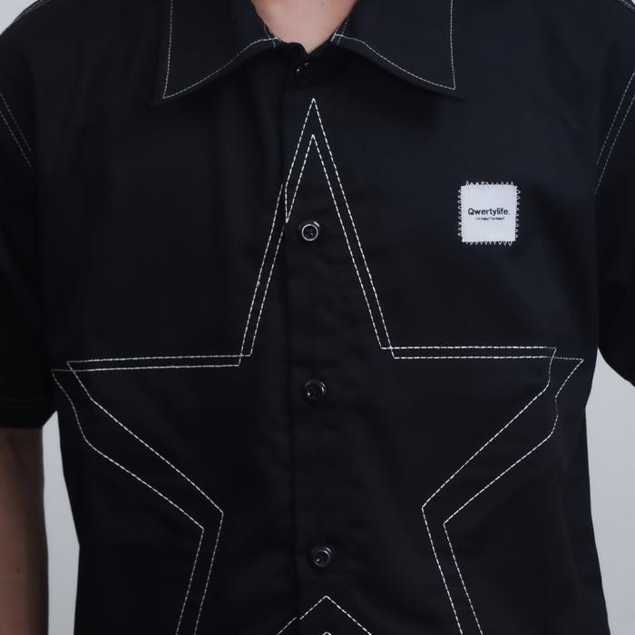 Qwertylife Kemeja Boxy Lengan Pendek Hitam Geometris Unisex Black