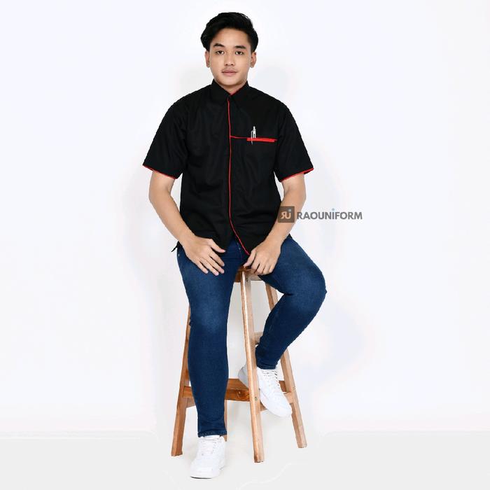 Kemeja Kantor Pria Seragam Kombinasi Lengan Pendek Atasan Kemeja Keren Pria Bisa Custom Bordir