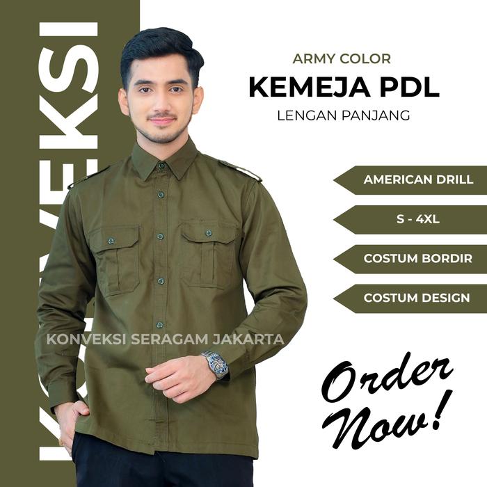 PDL Baju Kemeja Seragam Kerja Pakaian Dinas Lapangan Hjau Army Bordir