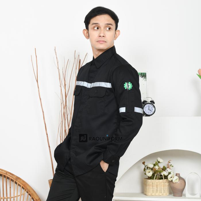 RAOUNIFORM Atasan Hitam Wearpack Lengan Panjang Kemeja Proyek Safety Dengan Scotlight dan Bordir