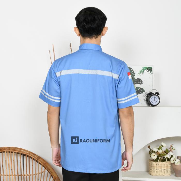 RAOUNIFORM Atasan Wearpack Biru Muda Lengan Pendek Atasan Bordir Seragam Proyek pria Seragam Safety