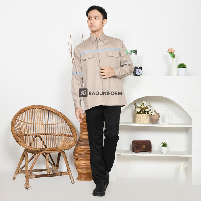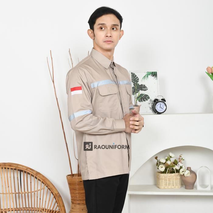 RAOUNIFORM Baju Proyek Safety Krem Lengan Panjang Seragam Lapangan Outdoor Wearpack Safety