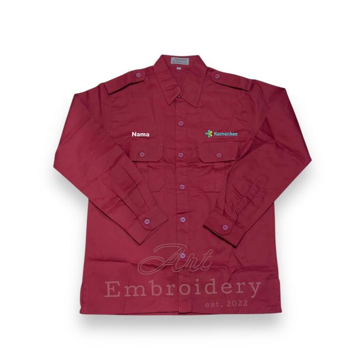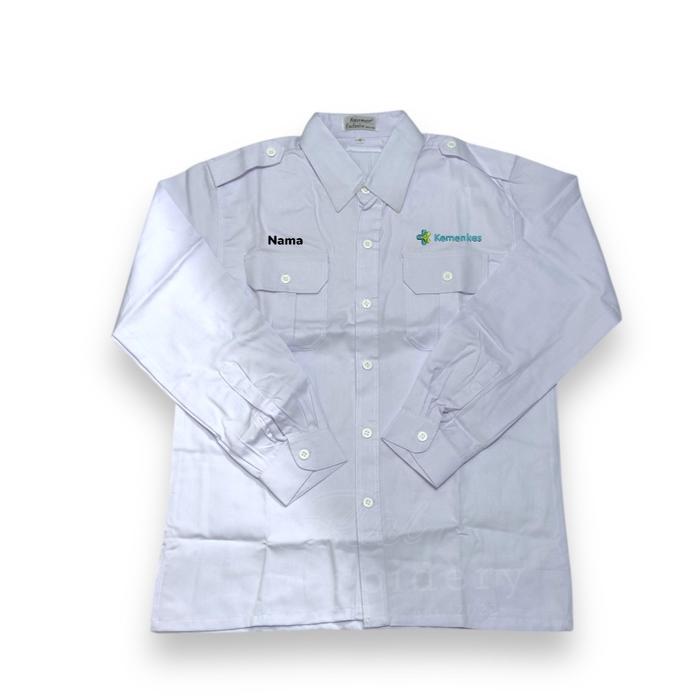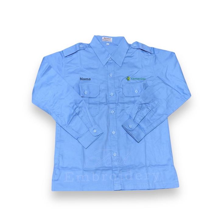 Kemeja Seragam Kemenkes+Nama RI Pria-wanita Bahan American drill Lengan Panjang Bordir komputer