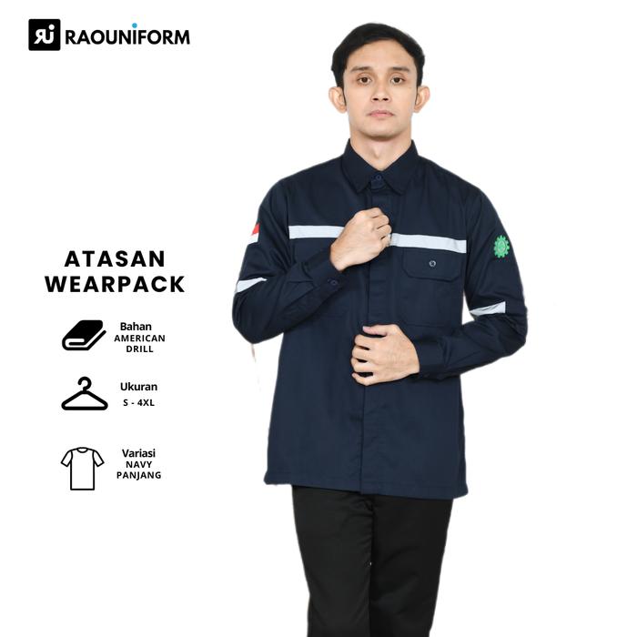 RAOUNIFORM Seragam Atasan Wearpack Lengan Panjang Navy Free Safety K3 dan Bendera Merah Putih