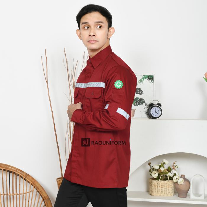 RAOUNIFORM Atasan Safety Wearpack Maroon Lengan Panjang 12 Variasi Warna Bordir K3 Bendera