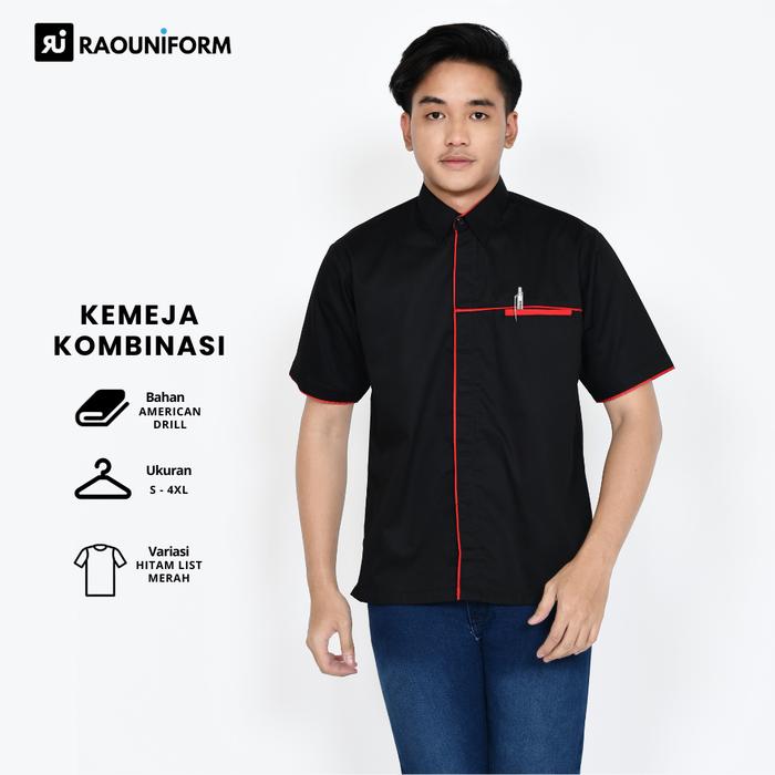 Raouniform Kemeja Kombinasi Lengan Pendek Pria Bahan American Drill Kancing Hidden Seragam Kerja