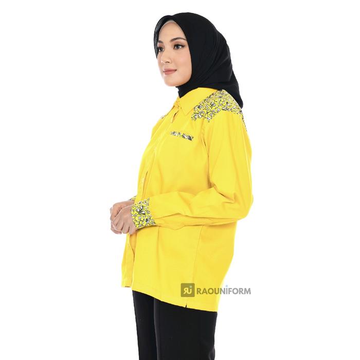 Kemeja Batik Pria & Wanita Motif Kuning Premium American Drill Lengan Panjang Kantong Dada