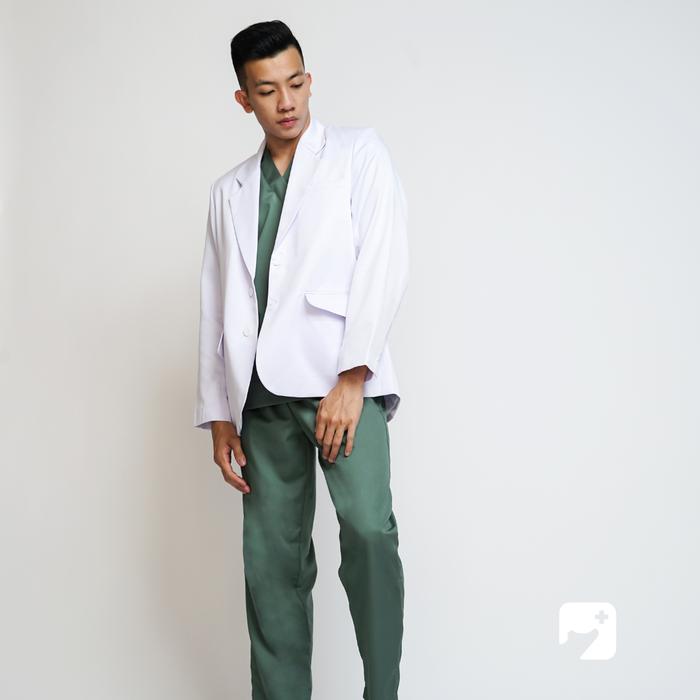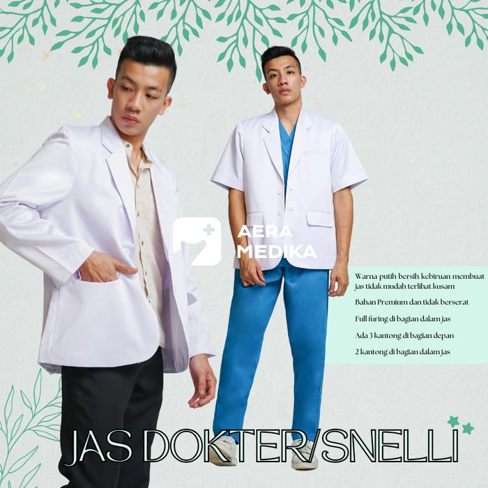 AERAMEDIKA - Jas Dokter / Snelli Pria Lengan Panjang Pendek Putih